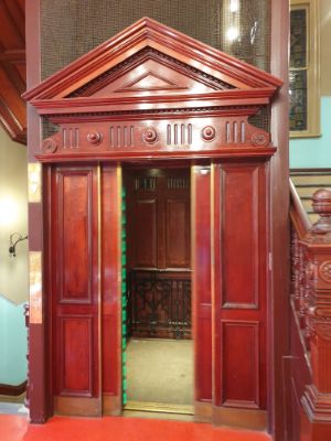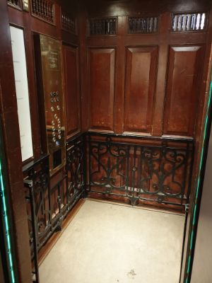 Check out the old school elevator.