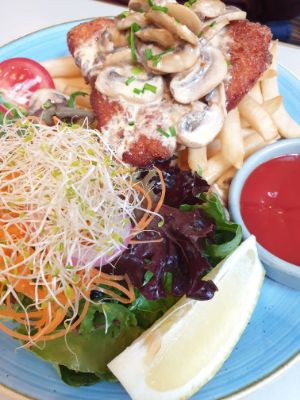 Chicken fillet with mushroom sauce. Aiken said this was good.