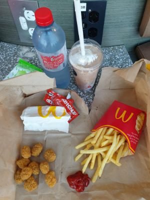 Some quick bites before boarding the plane.