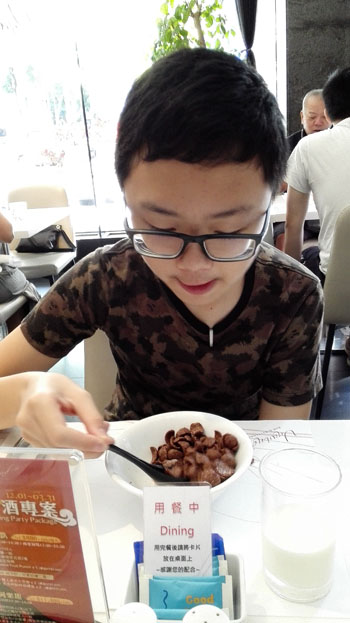 His standard cereals for the morning.