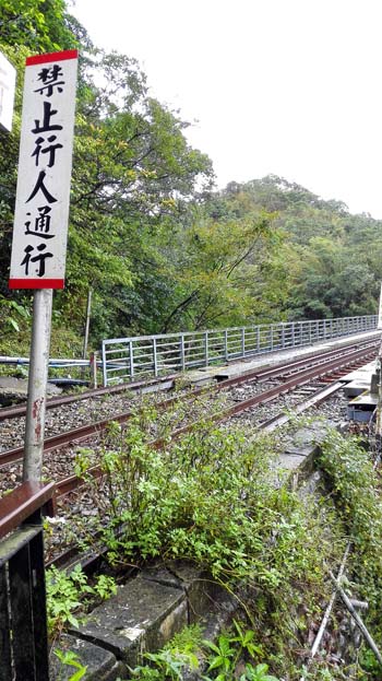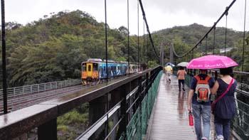 There is a track which runs parallel to the bridge for the Pingxi train line.
