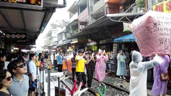 Next stop, Shifen to release sky lanterns. Was worried that if the rain is too heavy, we would not be able to release the lanterns.