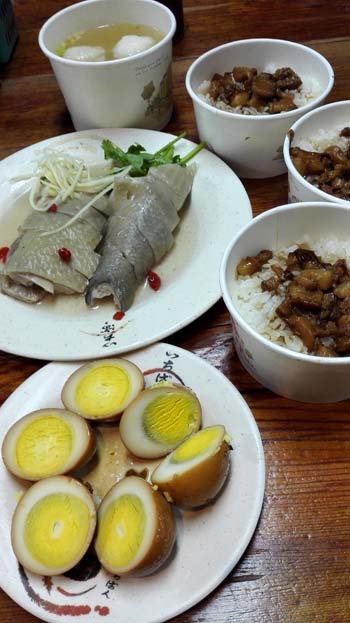 We had braised meat rice, egg, drunken chicken and sotong ball soup. Generally ok. Nothing to shout about.