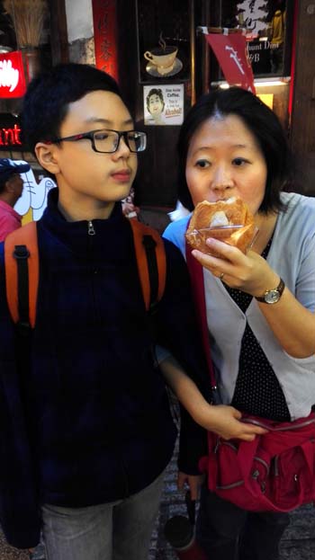 The Mrs trying the Yam Croissant. Quite nice but a bit hard to eat, messy with all the yam paste flowing.