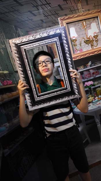 Aiken posing for the camera. He kept saying this place is evil cause they shrank everything...even the dinosaurs..